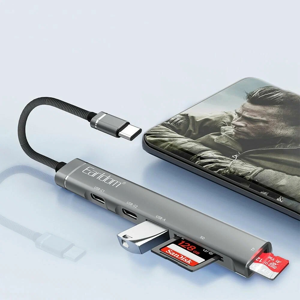5-in-1 USB-C Hub – Multiport Adapter with HDMI, USB 3.0, SD/TF Card Reader & More