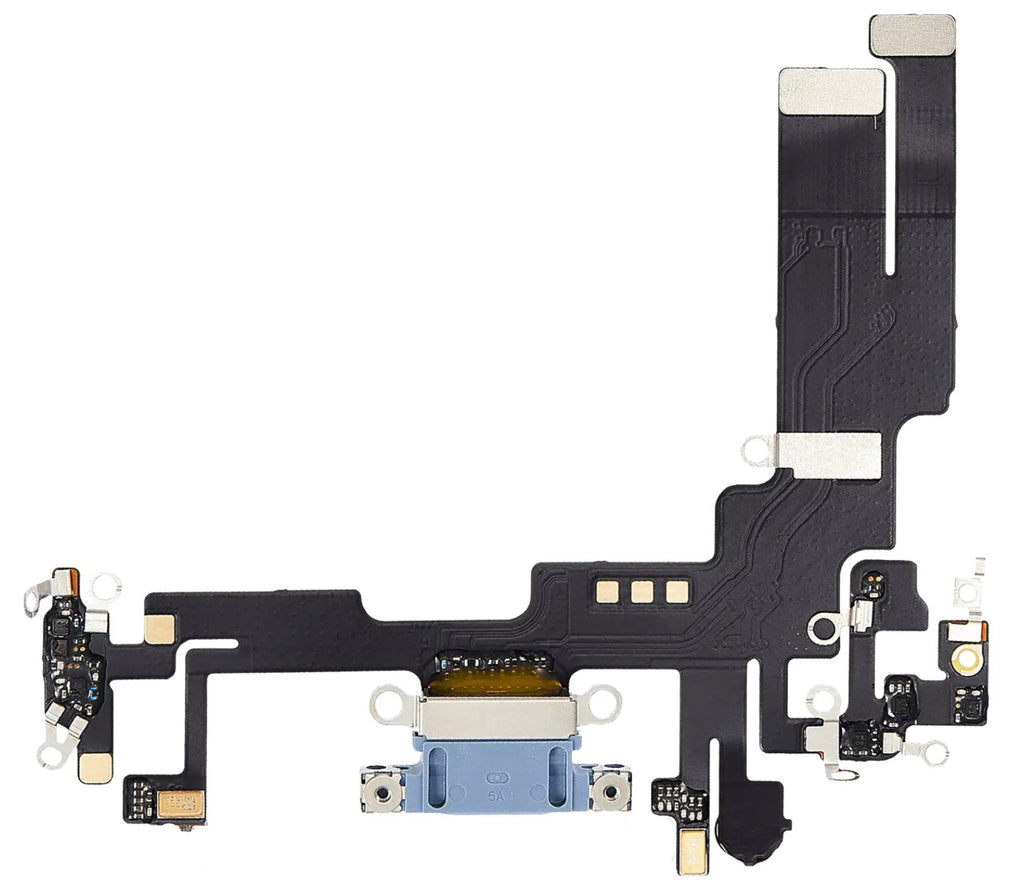 Restore charging and microphone function with this Blue Charging Port Flex Cable, designed for the iPhone 14. This flex assembly includes the charging connector, microphone, and internal flex ribbon, making it ideal for resolving charging issues, port damage, or voice input problems.