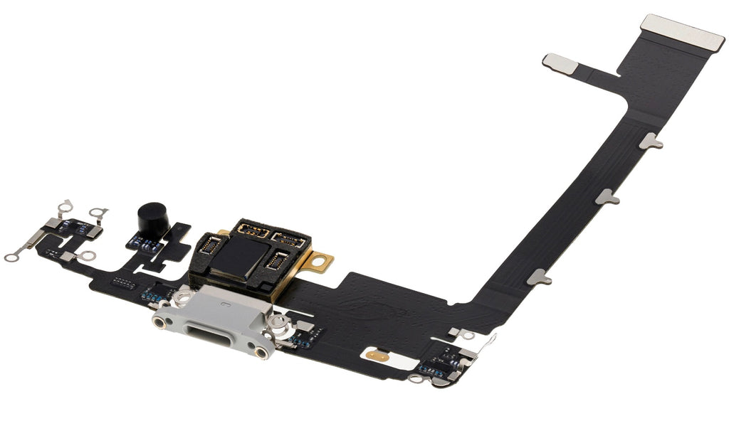 Restore power, data sync, and audio functionality with this Silver Charging Port Flex Cable, designed for the iPhone 11 Pro Max. This internal assembly includes the charging port, bottom microphone, and data transmission flex, color-matched for silver housing models.