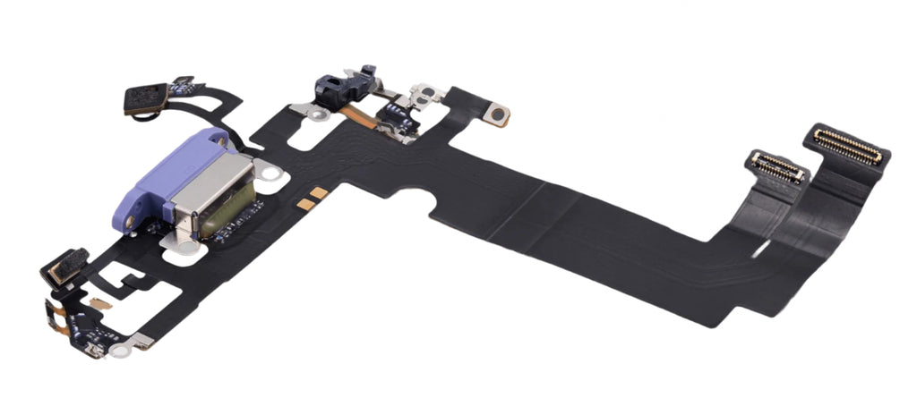 Restore charging and audio performance with this Purple Charging Port Flex Cable, made for the iPhone 12 Mini. This unit includes the USB charging port, bottom microphone, and data sync connection, color-matched to purple housings.