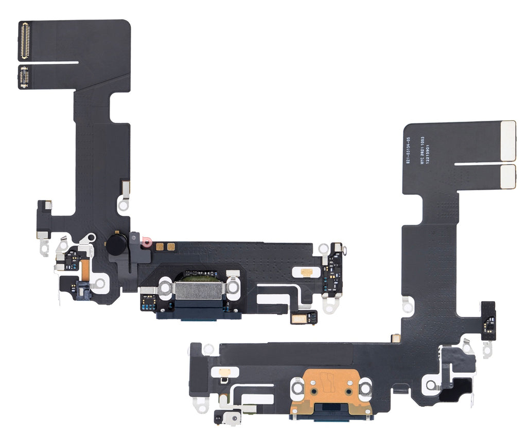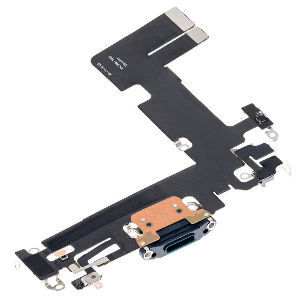 Replace your damaged or non-responsive port with this Black Charging Port Flex Cable for iPhone 13. This internal flex includes the charging connector, sync functionality, and bottom microphone, all color-matched to black housing.