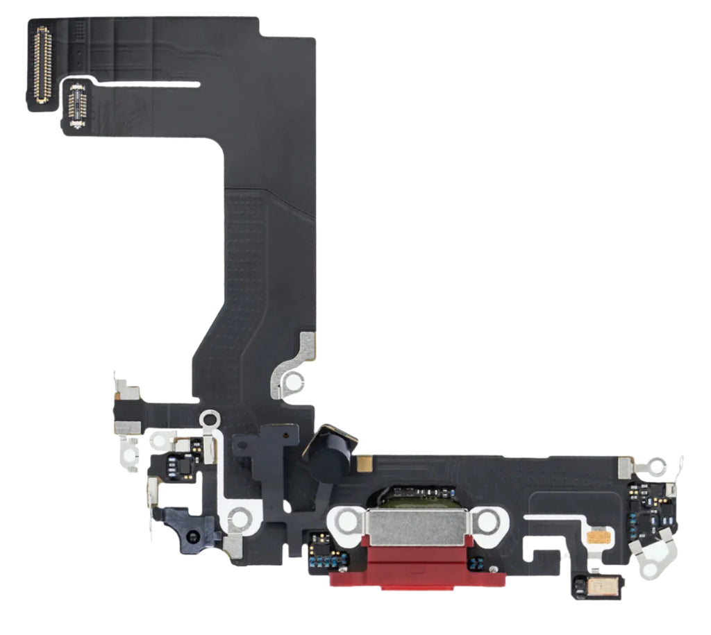 Fix charging, syncing, or microphone issues with this Red Charging Port Flex Cable for the iPhone 13 Mini. This internal replacement part restores full USB charging and data transfer along with voice input via the bottom mic, in a color-matched red housing finish.