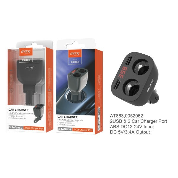 2 USB + 2 Car Charger Ports – Charge four devices at once