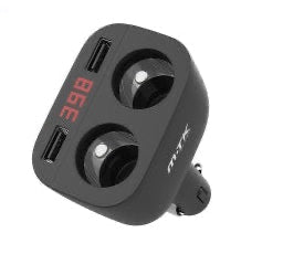 Power up on the go with the Dual USB & Dual Car Charger Adapter, equipped with a bendable chimney neck and real-time LED voltage display. Designed to fit standard car sockets, this high-performance charger lets you power up to four devices simultaneously — two via USB and two via car power ports.