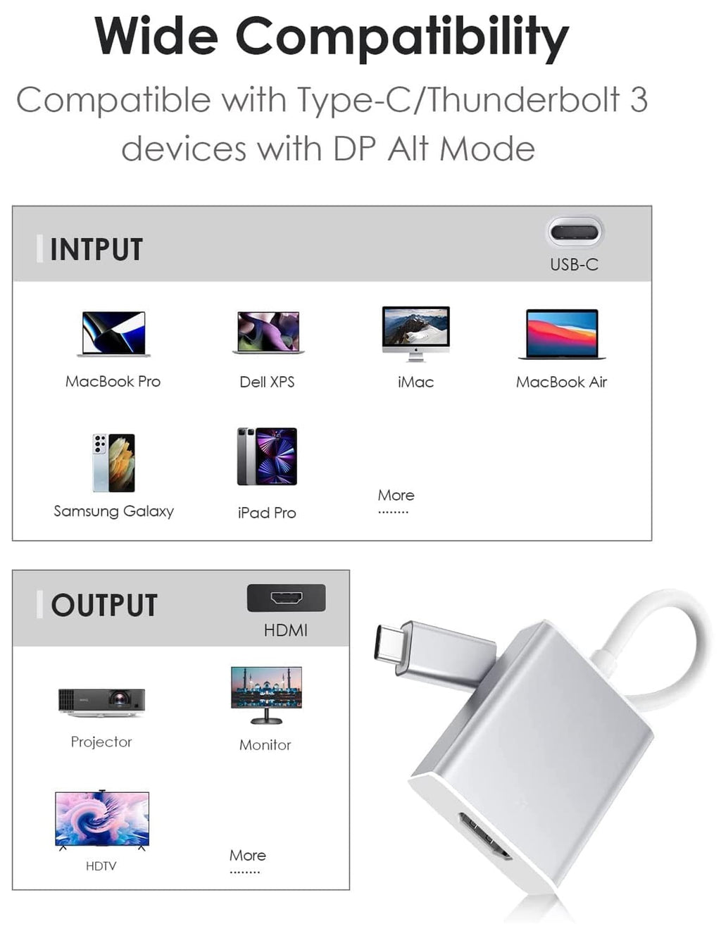 This HDMI to Type-C Adapter allows you to transmit high-definition video and audio from HDMI-enabled sources(like laptops, game consoles, or Blu-ray players) to USB-C displays that support video input via DisplayPort Alt Mode.