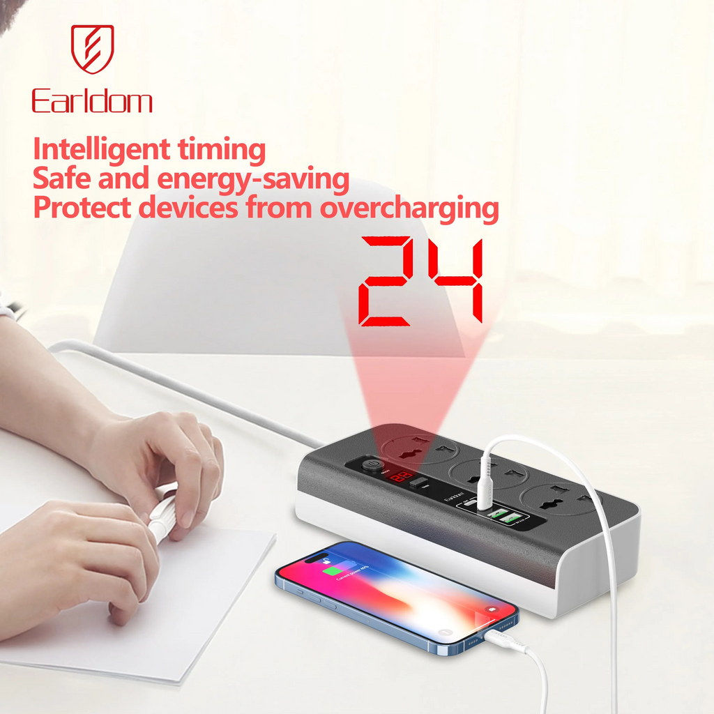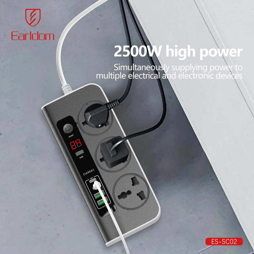 This high-performance 2500W power extension socket is equipped with 3 power outlets, 2 USB ports, and 2 USB-C ports that intelligently identify connected devices for optimal charging. Built with advanced safety features to protect your electronics from voltage spikes and overheating.