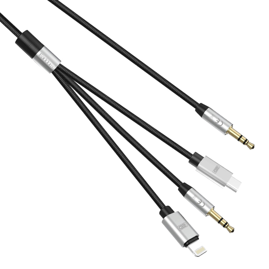 3-in-1 Audio Support: Lightning, USB-C, and 3.5mm male connectors