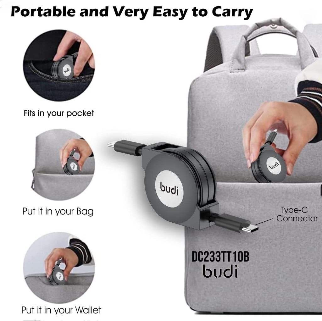 Take it anywhere! The retractable cable design offers four adjustable lengths: 40cm, 60cm, 80cm, and 100cm — perfect for home, office, or car use. Simply pull both ends to retract automatically. Compact enough to fit in your handbag, backpack, or pocket.