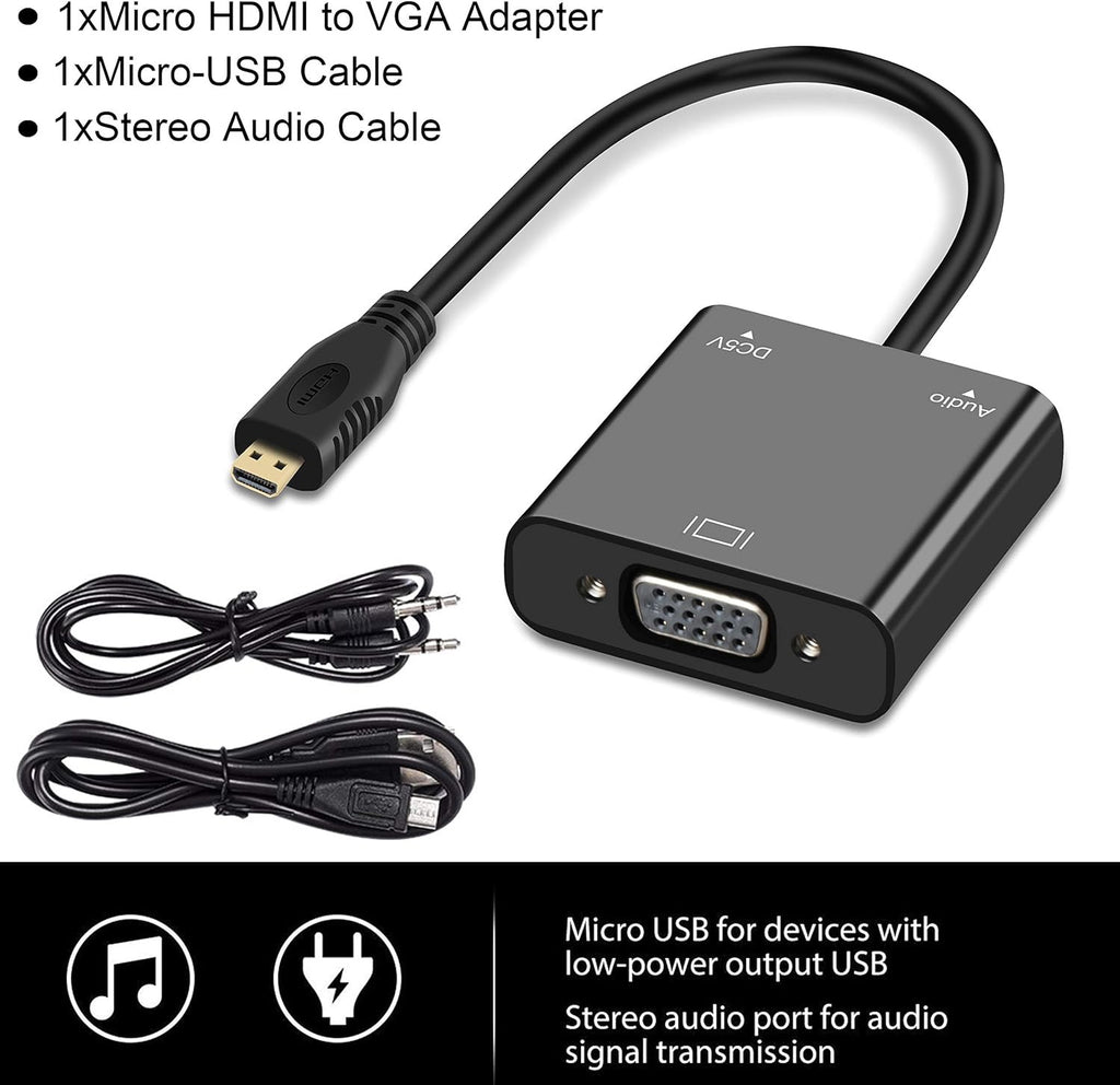 The VGA to Micro HDMI Adapter lets you easily connect older laptops, PCs, or projectors with VGA output to modern Micro HDMI displays such as tablets, cameras, or portable monitors.